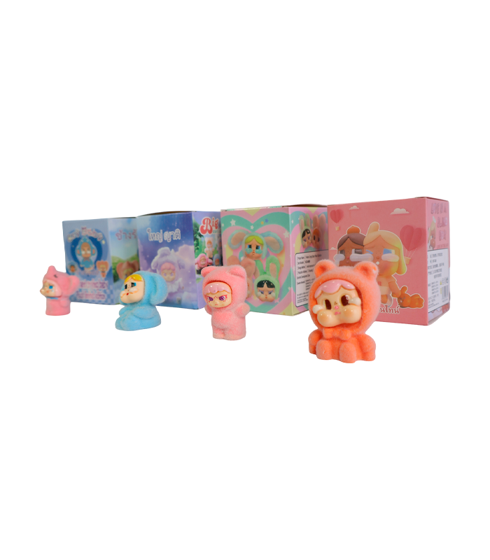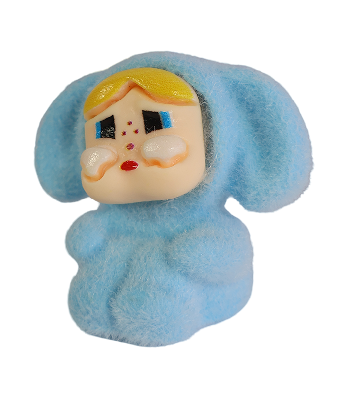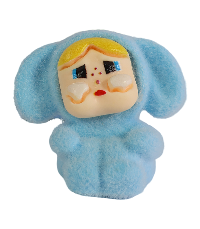 Esta adorable figura flocked destaca por su textura suave y aterciopelada de color azul bebé, ofreciendo una sensación táctil única que la hace irresistible al tacto. El rostro, detallado con un acabado de vinilo brillante, presenta un diseño cautivador y ligeramente melancólico, con pecas sutiles y cabello rubio moldeado. Ideal para añadir un toque de nostalgia y dulzura a cualquier estantería o colección, este muñeco es un tesoro para aquellos que aprecian los juguetes de diseño vintage o kawaii. Su acabado aterciopelado lo convierte en una pieza única y llamativa para cualquier vitrina de coleccionables.