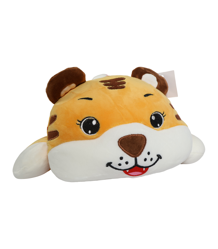 Este adorable peluche de tigre, de diseño extra largo y excepcionalmente suave, funciona perfectamente como almohada corporal o compañero de siesta.