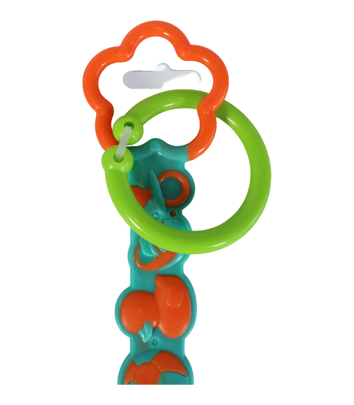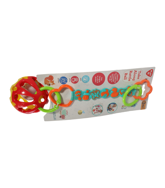 El Sonajero de Actividades Take Along Rattle Ball de PlayGo es el accesorio de entretenimiento perfecto para el desarrollo temprano de tu pequeño. Diseñado específicamente para bebés de 3 meses en adelante, este juguete interactivo estimula la visión, el tacto y la destreza manual. Cuenta con una cadena de eslabones grandes y coloridos (naranja, turquesa, verde) con diferentes formas y texturas que capturan la atención. La pelota sonajero inferior, en rojo y amarillo, emite un sonido agradable al agitarse, promoviendo la audición y animando al bebé a agarrar y manipular. Su diseño permite colgarlo fácilmente en cualquier lugar (cochecito, asiento de seguridad, cuna o arco de actividades) garantizando diversión y aprendizaje constante, incluso fuera de casa. Fabricado con materiales seguros y duraderos, es ideal para horas de juego educativo.
