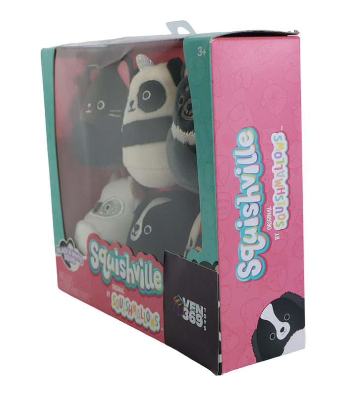 Presentamos el Squishville Black & White Squad, el paquete esencial para todo fanático de los Squishmallows. Este set coleccionable incluye seis (6) mini peluches de 5 cm de altura, cada uno con el icónico tacto ultrasuave que caracteriza a Squishmallows. El «Black & White Squad» presenta personajes únicos, incluyendo un panda, un gato negro, y otros adorables amigos en tonos blanco y negro. Ideales para niños a partir de 3 años y coleccionistas. Estos mini peluches son el complemento perfecto para cualquier juego de Squishville. Fomenta el juego imaginativo, ayuda a la motricidad fina y son perfectos como premios, regalos de cumpleaños o para decorar. ¡Comienza a construir tu propia ciudad Squishville hoy mismo con estos tiernos y apretables compañeros!