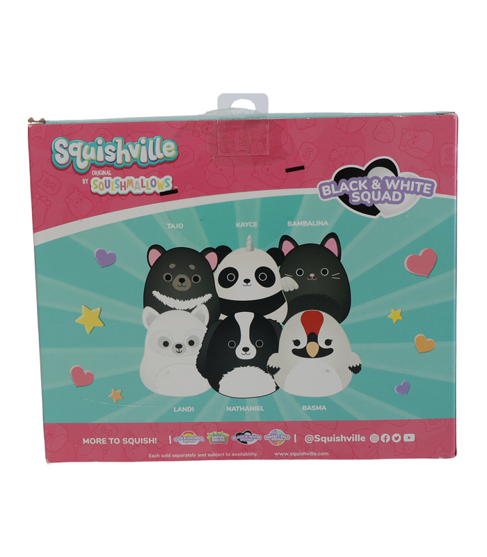 ¡Expande tu Squishville con el Black & White Squad! Este pack exclusivo trae 6 mini Squishmallows adorables y esponjosos en temática monocromática. Perfectos para coleccionar, intercambiar y llevar a todas partes.